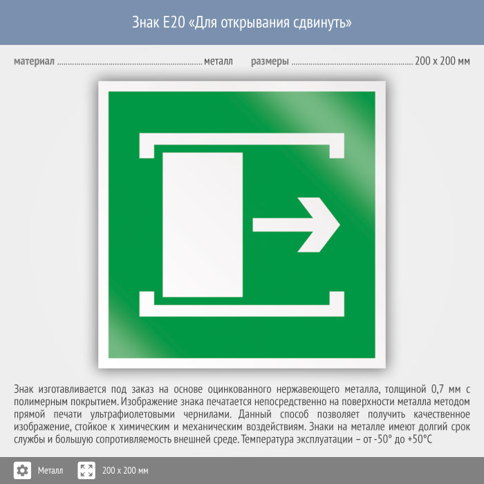 Знак E20 «Для открывания сдвинуть» (металл, 200х200 мм) в Ставрополе купить