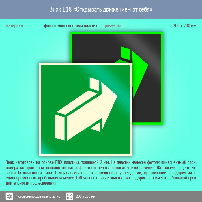 Знак E18 «Открывать движением от себя» (фотолюминесцентный пластик, 200х200 мм) в Ставрополе купить