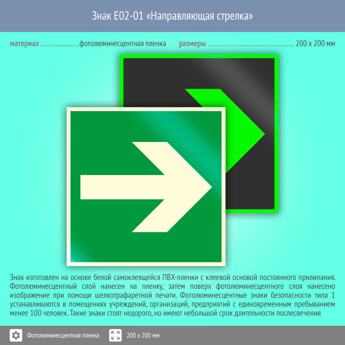 Знак E02-01 «Направляющая стрелка» (фотолюминесцентная пленка, 200х200 мм) в Ставрополе купить