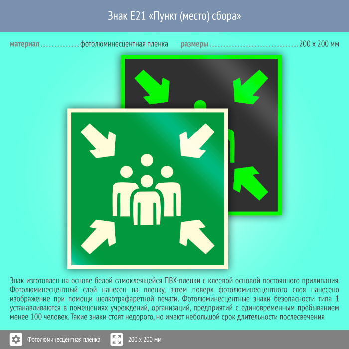 Знак E21 «Пункт (место) сбора» (фотолюминесцентная пленка, 200х200 мм) в Ставрополе купить