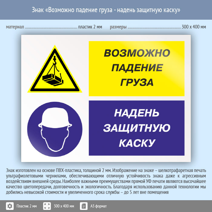 Знак «Возможно падение груза - надень защитную каску», КЗ-17 (пластик, 400х300 мм) в Ставрополе купить