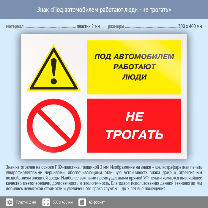 Знак «Под автомобилем работают люди - не трогать», КЗ-66 (пластик, 400х300 мм) в Ставрополе купить
