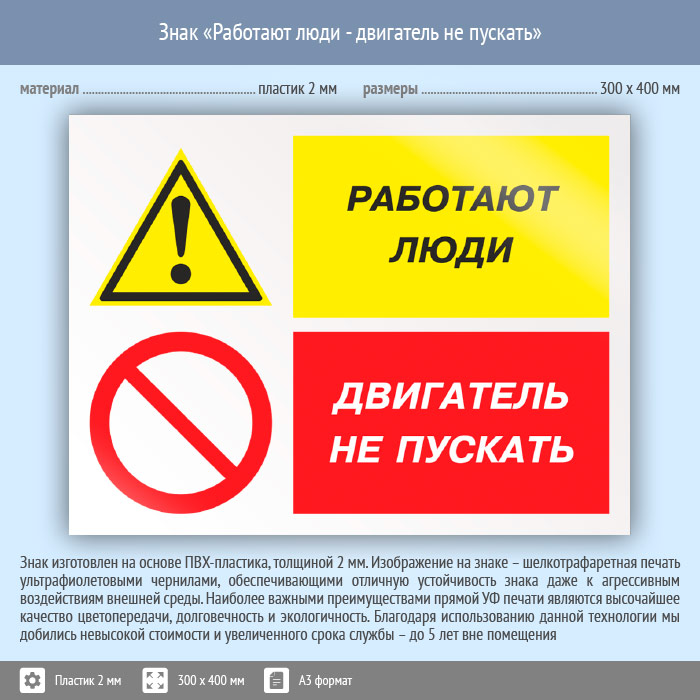 Знак «Работают люди - двигатель не пускать», КЗ-82 (пластик, 400х300 мм) в Ставрополе купить