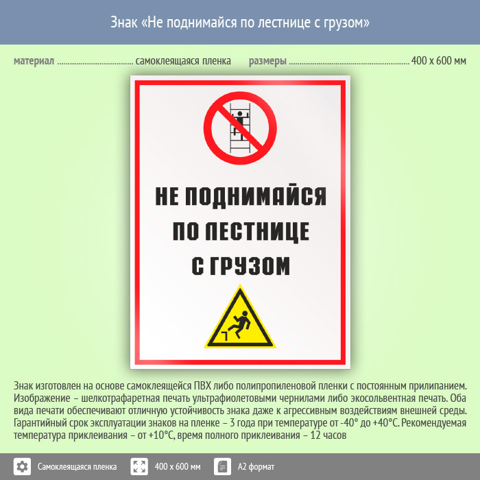 Знак «Не поднимайся по лестнице с грузом», КЗ-28 (пленка, 400х600 мм) в Ставрополе купить