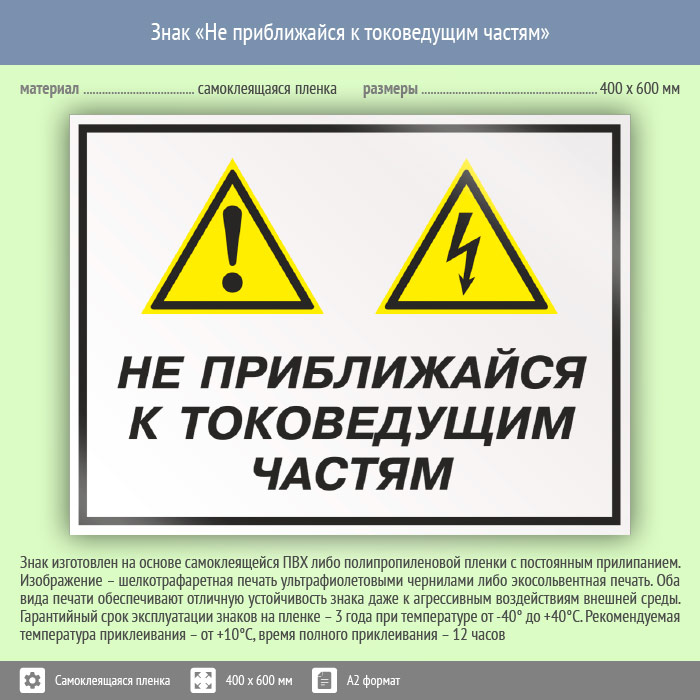 Знак «Не приближайся к токоведущим частям», КЗ-29 (пленка, 600х400 мм) в Ставрополе купить