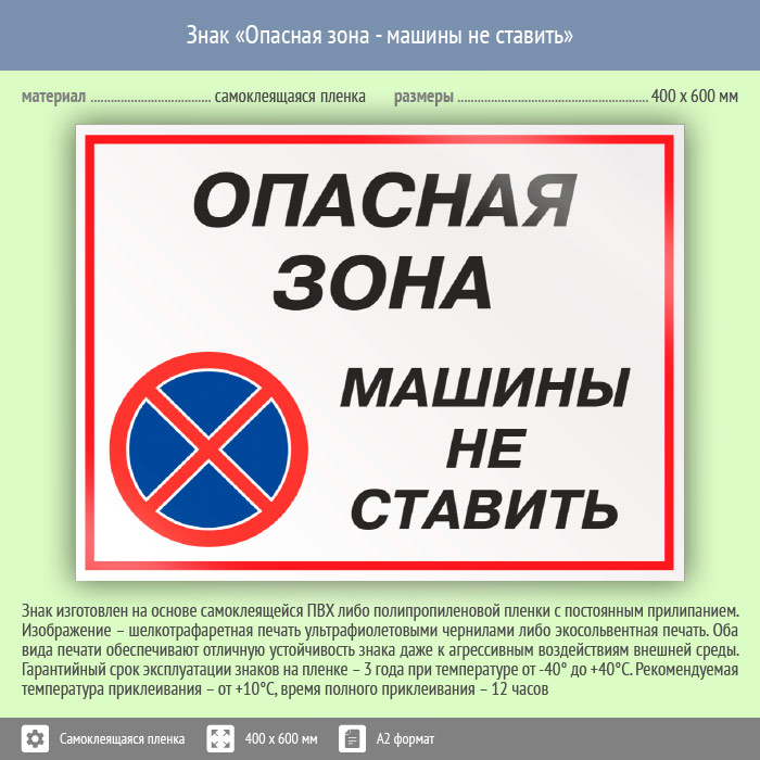 Знак «Опасная зона - машины не ставить», КЗ-32 (пленка, 600х400 мм) в Ставрополе купить
