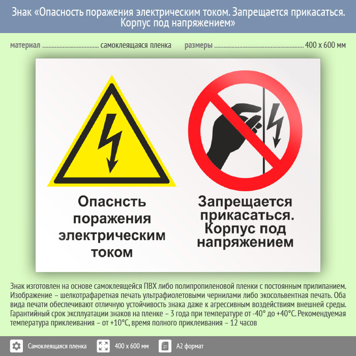 Знак «Опасность поражения электрическим током. Запрещается прикасаться. Корпус под напряжением», КЗ-47 (пленка, 600х400 мм) в Ставрополе купить