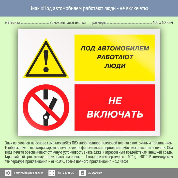 Знак «Под автомобилем работают люди - не включать», КЗ-65 (пленка, 600х400 мм) в Ставрополе купить