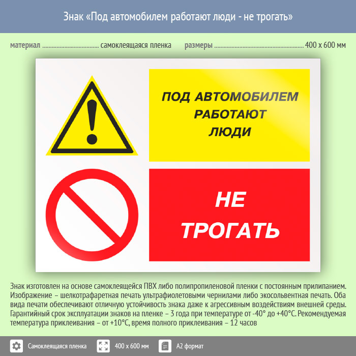 Знак «Под автомобилем работают люди - не трогать», КЗ-66 (пленка, 600х400 мм) в Ставрополе купить