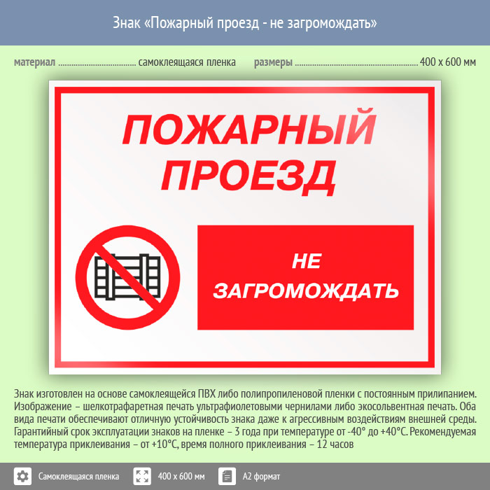 Знак «Пожарный проезд - не загромождать», КЗ-67 (пленка, 600х400 мм) в Ставрополе купить