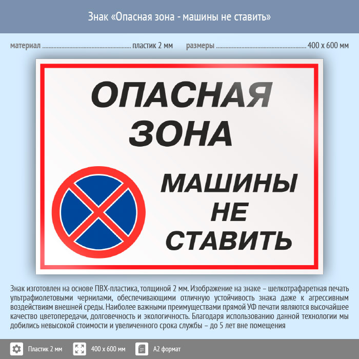 Знак «Опасная зона - машины не ставить», КЗ-32 (пластик, 600х400 мм) в Ставрополе купить