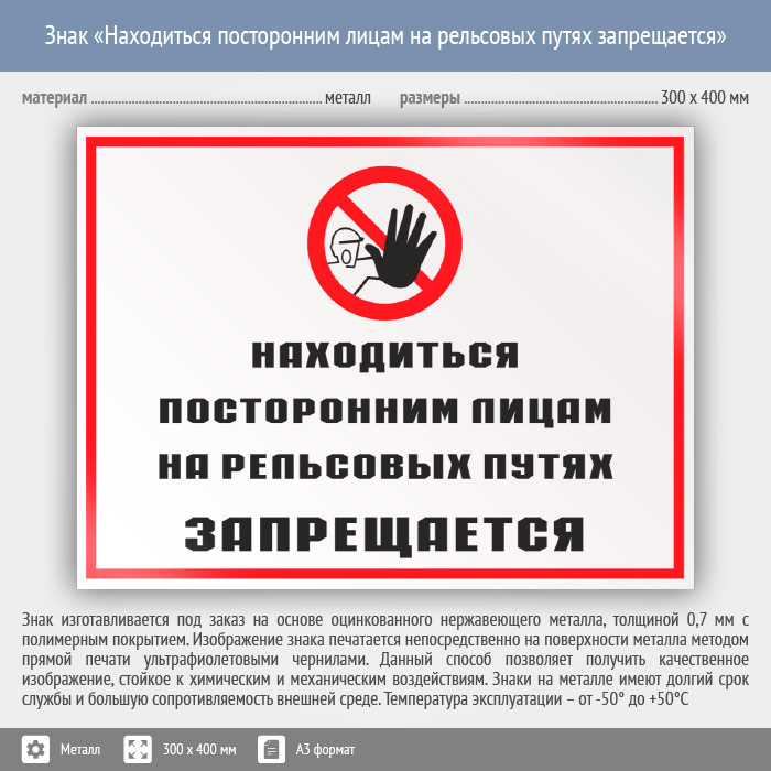 Знак «Находиться посторонним лицам на рельсовых путях запрещается», КЗ-25 (металл, 400х300 мм) в Ставрополе купить