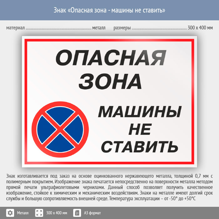 Знак «Опасная зона - машины не ставить», КЗ-32 (металл, 400х300 мм) в Ставрополе купить