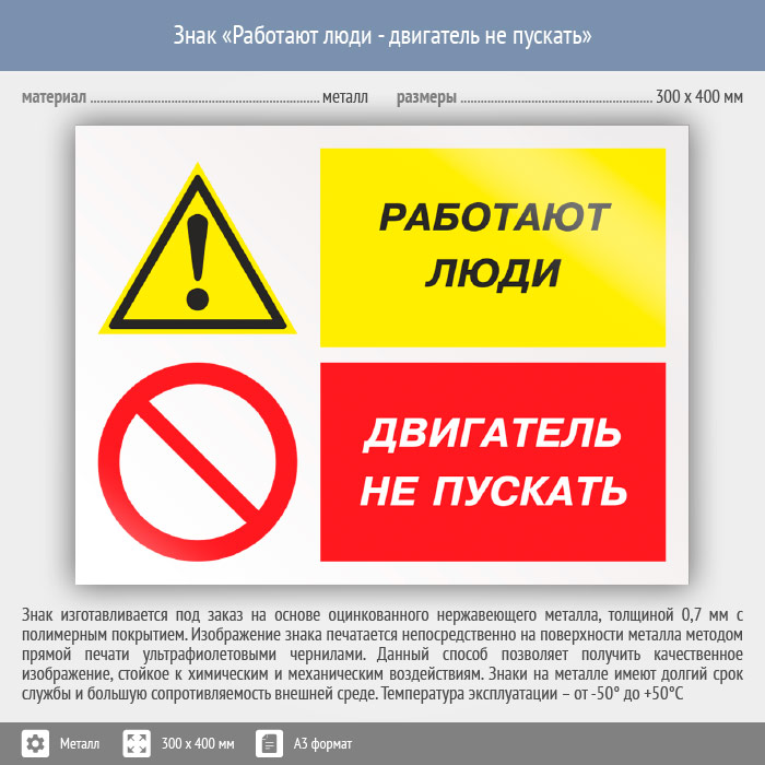 Знак «Работают люди - двигатель не пускать», КЗ-82 (металл, 400х300 мм) в Ставрополе купить