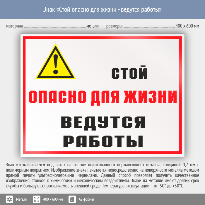 Знак «Стой опасно для жизни - ведутся работы», КЗ-86 (металл, 600х400 мм) в Ставрополе купить