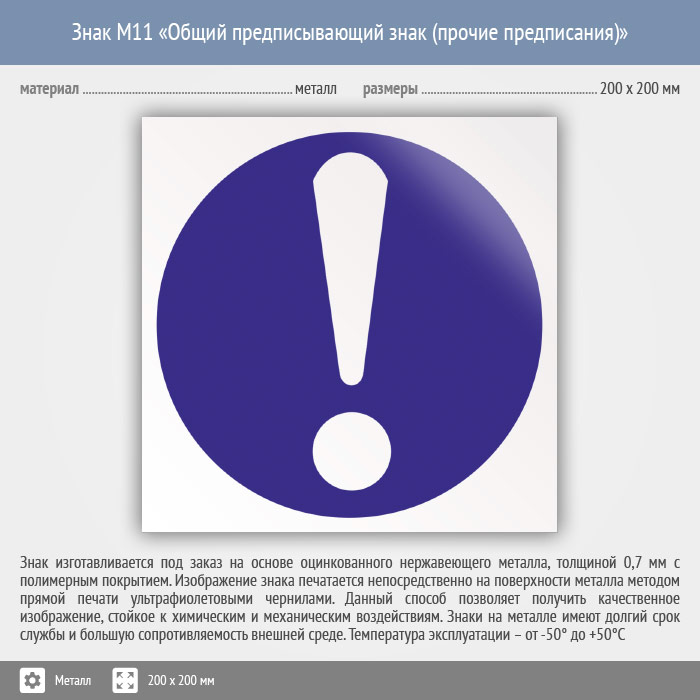 Знак M11 «Общий предписывающий знак (прочие предписания)» (металл, 200х200 мм) в Ставрополе купить