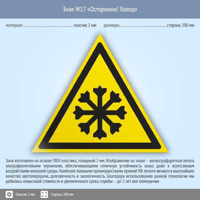 Знак W17 «Осторожно! холод» (пластик, сторона 200 мм) в Ставрополе купить