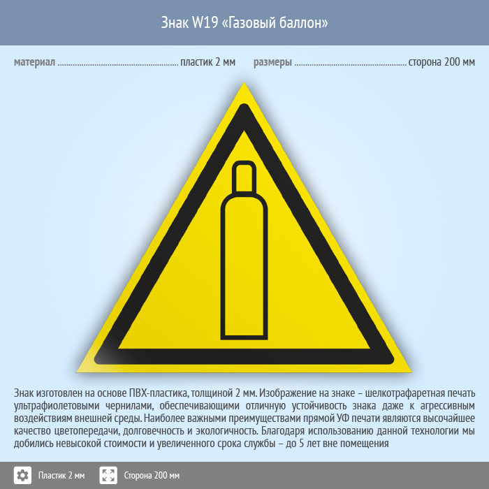 Знак W19 «Газовый баллон» (пластик, сторона 200 мм) в Ставрополе купить