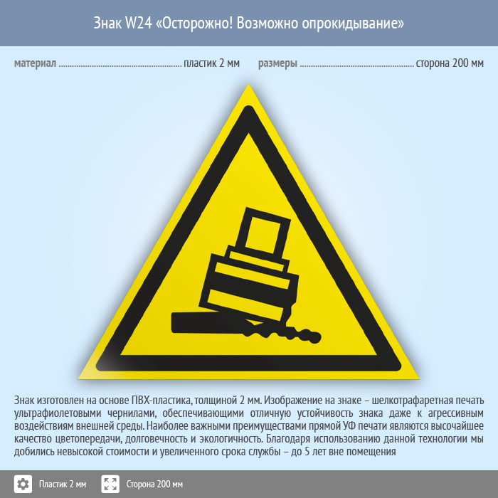 Знак W24 «Осторожно! возможно опрокидывание» (пластик, сторона 200 мм) в Ставрополе купить