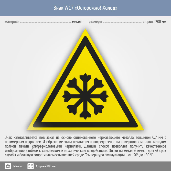 Знак W17 «Осторожно! холод» (металл, сторона 200 мм) в Ставрополе купить