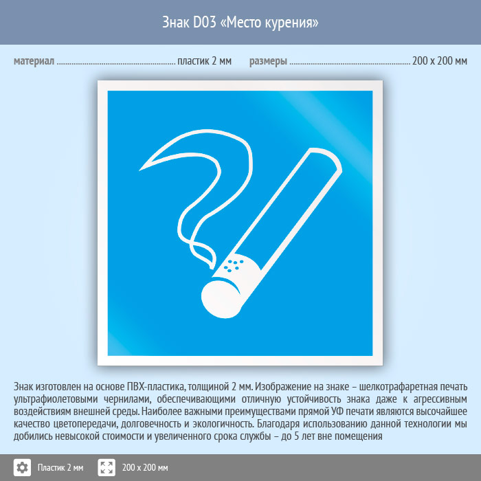 Знак D03 «Место курения» (пластик, 200х200 мм) в Ставрополе купить
