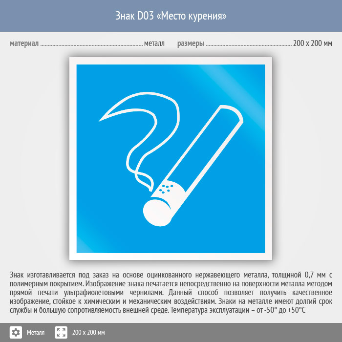 Знак D03 «Место курения» (металл, 200х200 мм) в Ставрополе купить