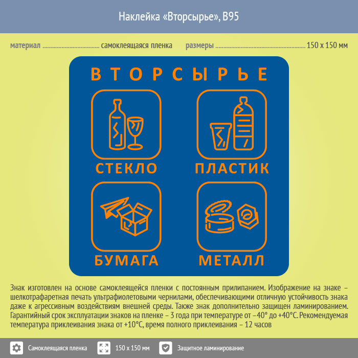 Наклейка на бак «Вторсырьё», B95 (пленка c ламинированием, 150х150 мм) в Ставрополе купить