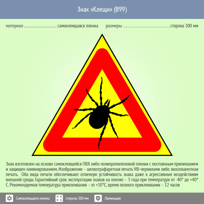 Знак «Клещи», B99 (пленка c ламинированием, сторона 200 мм) в Ставрополе купить