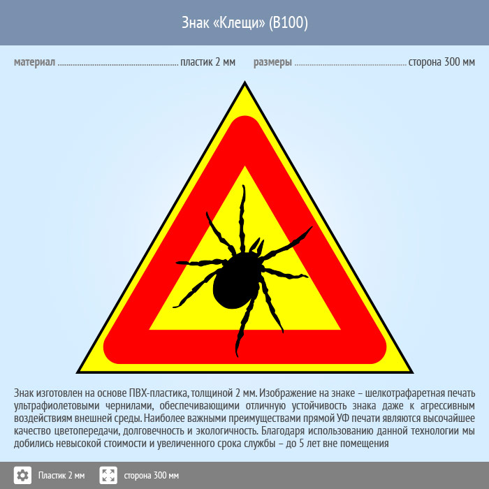 Знак «Опасно! Клещи», B100 (пластик, сторона 200 мм) в Ставрополе купить