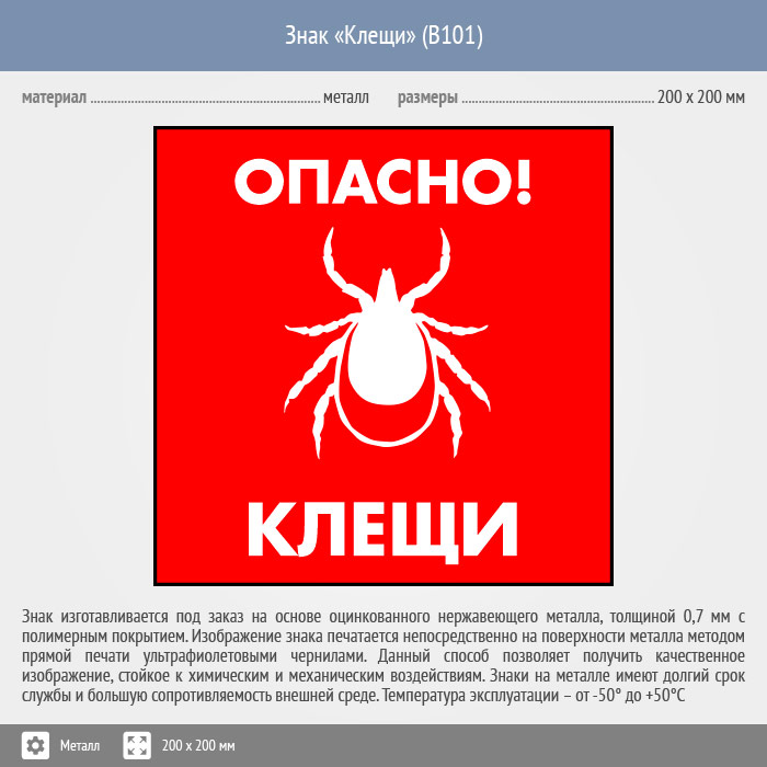 Знак «Опасно! Клещи», B101 (металл, 200х200 мм) в Ставрополе купить