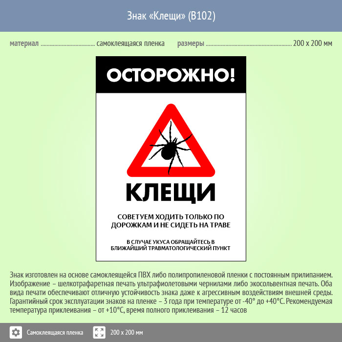 Знак «Осторожно! Клещи», B102 (пленка, 400х600 мм) в Ставрополе купить