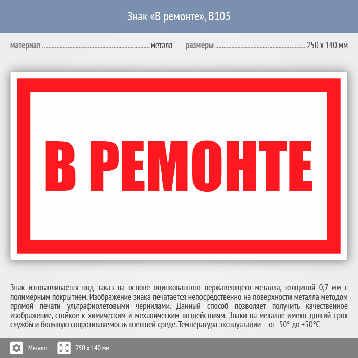 Знак «В ремонте», B105 (металл, 250х140 мм) в Ставрополе купить