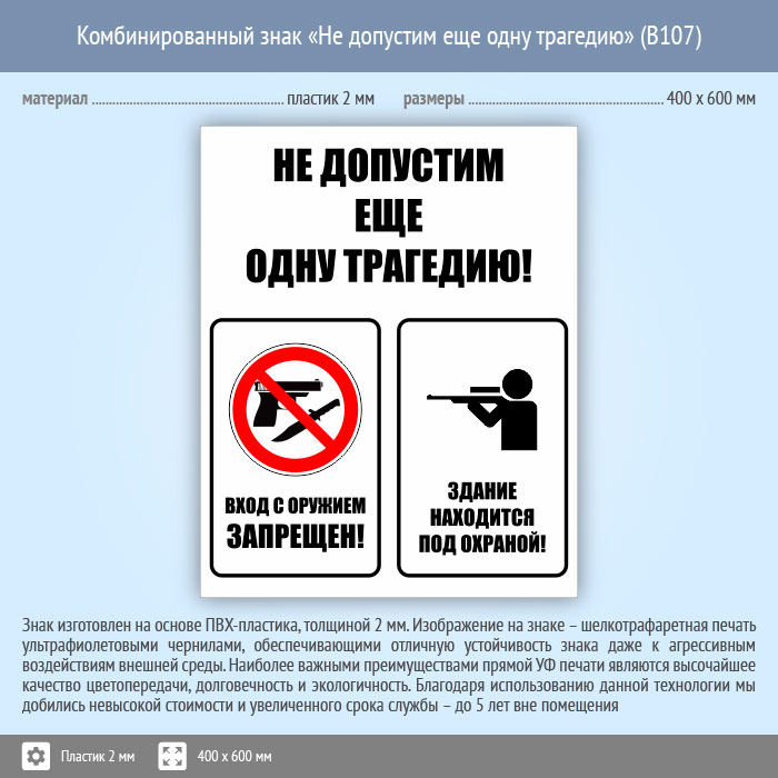 Комбинированный знак «Не допустим еще одну трагедию», B107 (пластик, 400х600 мм) в Ставрополе купить