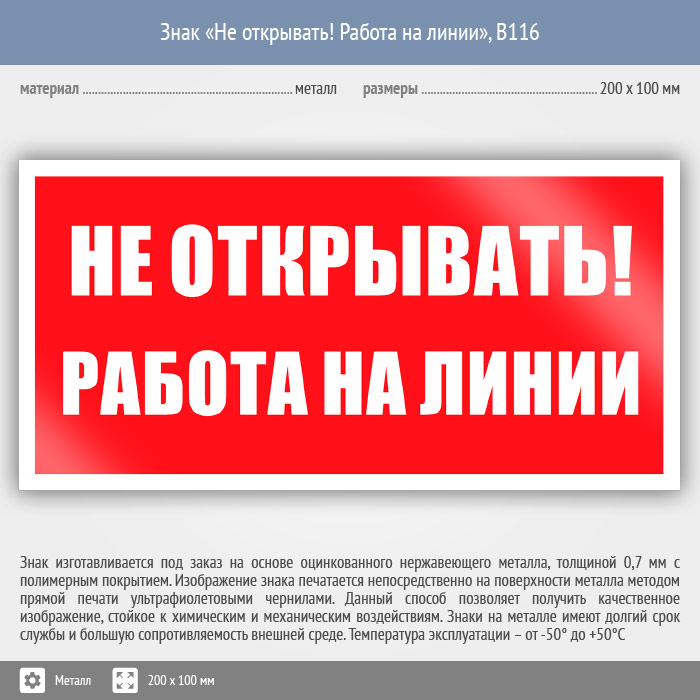 Знак «Не открывать! Работа на линии», B116 (металл, 200х100 мм) в Ставрополе купить