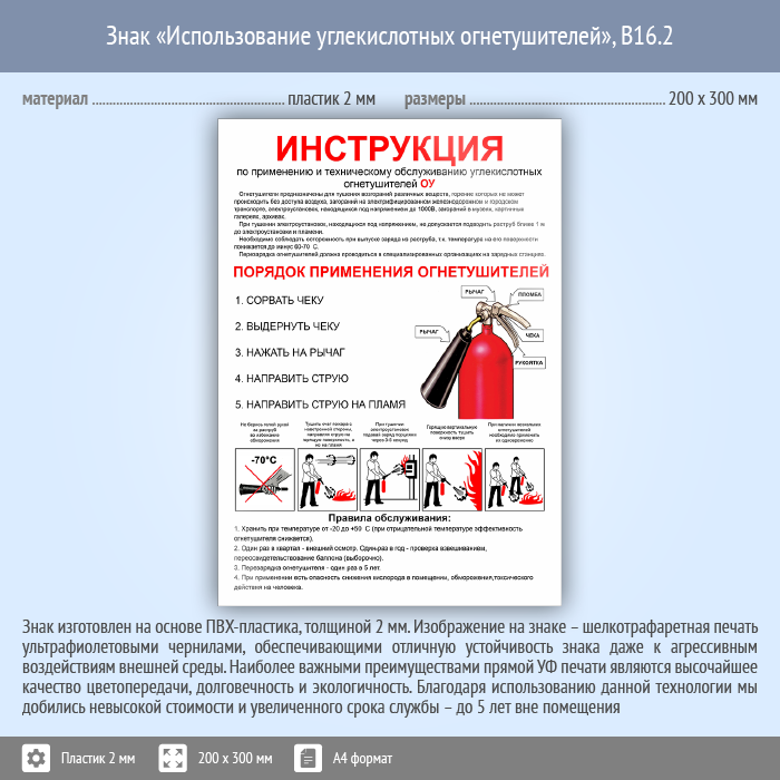 Знак «Использование углекислотных огнетушителей», B16.2 (пластик, 200х300 мм) в Ставрополе купить