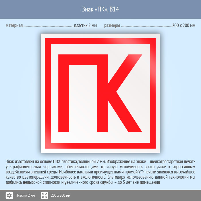 Знак «ПК», B14 (пластик, 200х200 мм) в Ставрополе купить