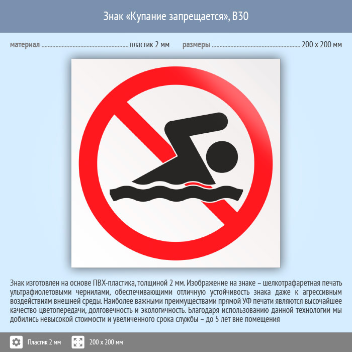 Знак «Купание запрещено», B30 (пластик, 200х200 мм) в Ставрополе купить