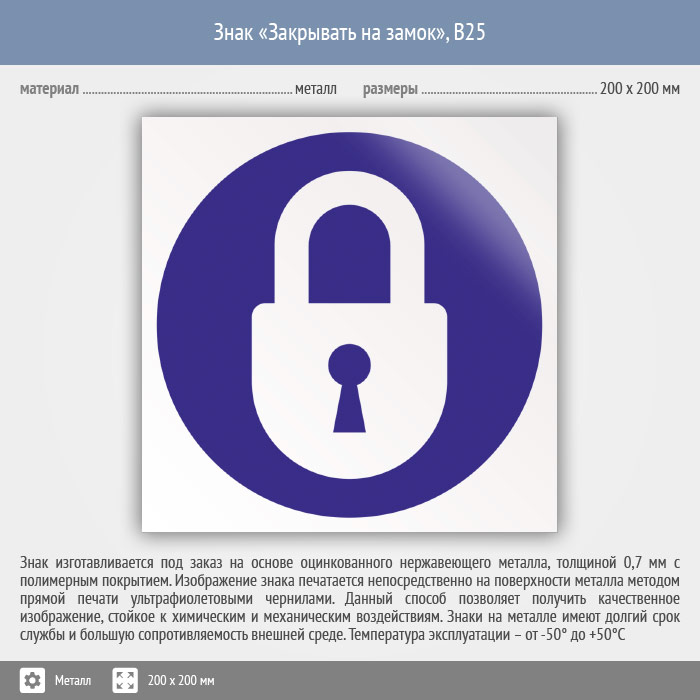Знак «Закрывать на замок», B25 (металл, 200х200 мм) в Ставрополе купить
