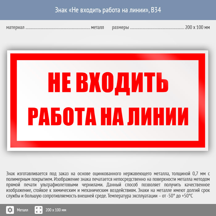 Знак «Не входить работа на линии», B34 (металл, 200х100 мм) в Ставрополе купить