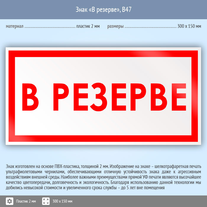 Знак «В резерве», B47 (пластик, 300х150 мм) в Ставрополе купить