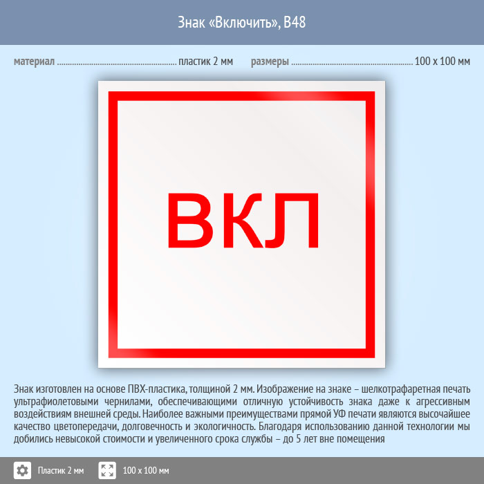 Знак «Включить», B48 (пластик, 100х100 мм) в Ставрополе купить