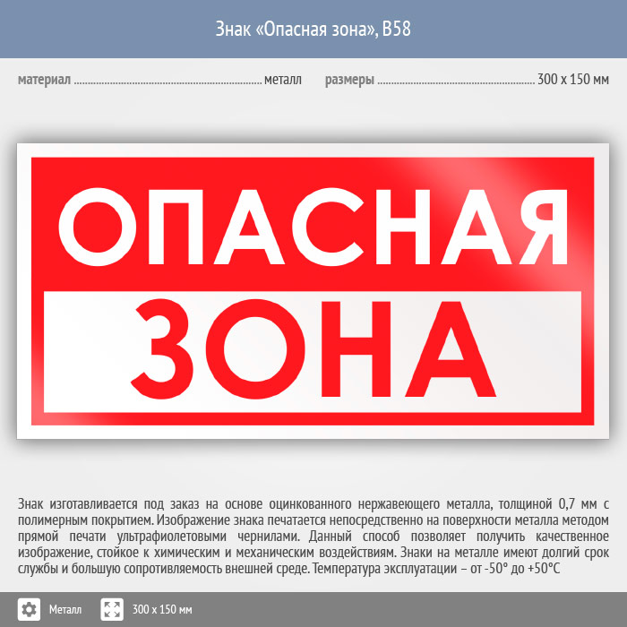 Знак «Опасная зона», B58 (металл, 300х150 мм) в Ставрополе купить