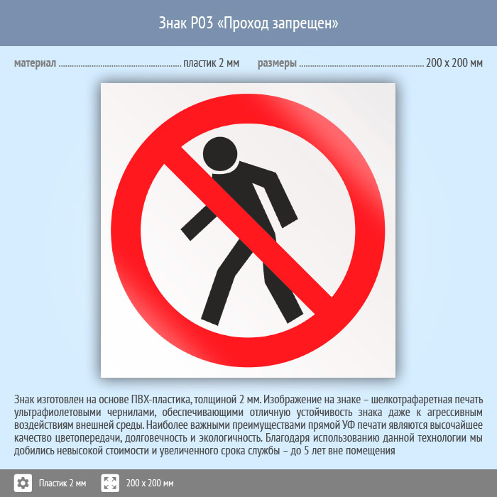 Знак P03 «Проход запрещен» (пластик, 200х200 мм) в Ставрополе купить