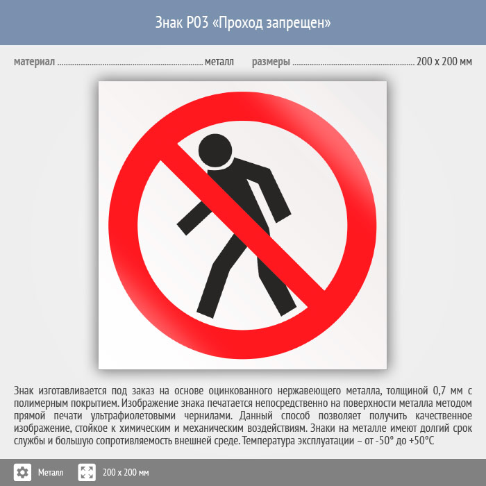Знак P03 «Проход запрещен» (металл, 200х200 мм) в Ставрополе купить