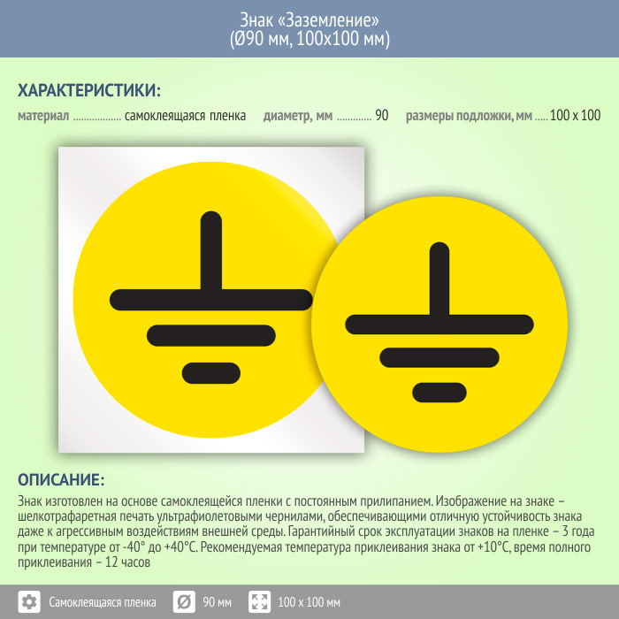 Знак (плакат) «Заземление», S46 (пленка, диаметр 90 мм, 100х100 мм) в Ставрополе купить