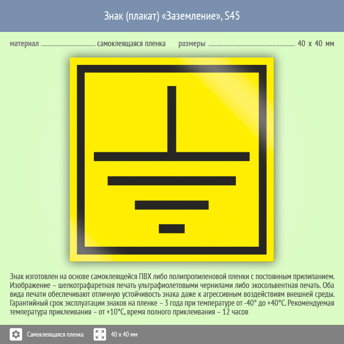 Знак (плакат) «Заземление», S45 (25 штук пленка, 40х40 мм) в Ставрополе купить