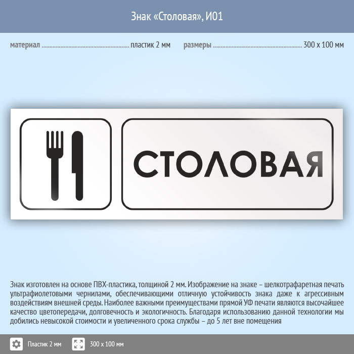 Знак «Столовая», И01 (пластик, 300х100 мм) в Ставрополе купить