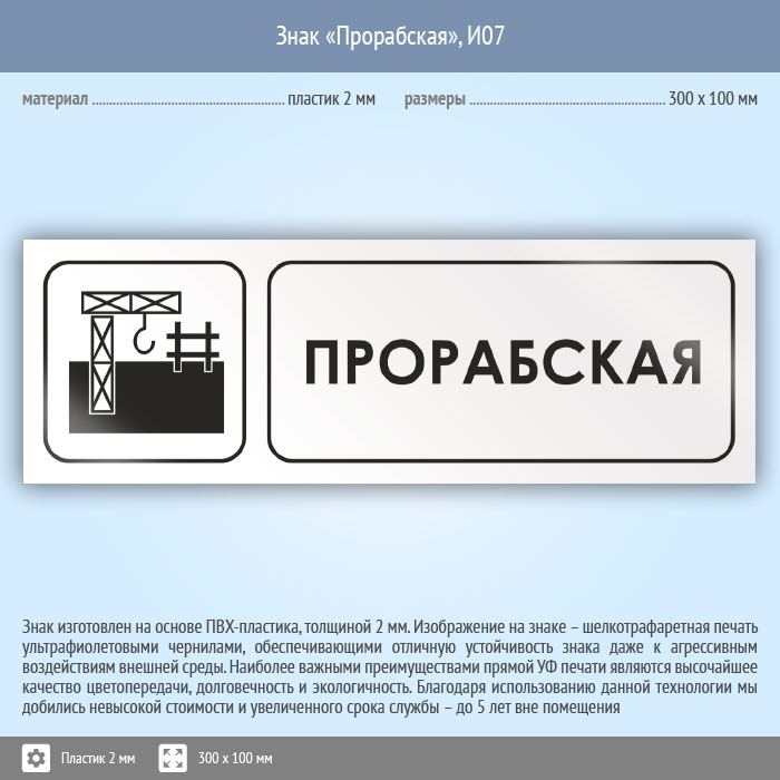 Знак «Прорабская», И07 (пластик, 300х100 мм) в Ставрополе купить