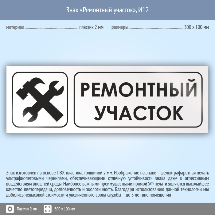 Знак «Ремонтный участок», И12 (пластик, 300х100 мм) в Ставрополе купить