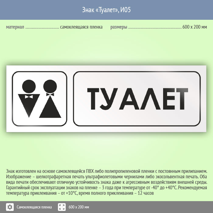 Знак «Туалет», И05 (пленка, 600х200 мм) в Ставрополе купить